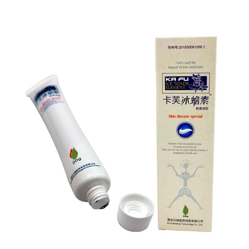 卡芙冰蟾素肤康凝胶由塑料容器、铝塑管、凝胶等组成。凝胶中含有白鲜皮、苦参、血竭、地肤子、金银花、薄荷等成份组成。